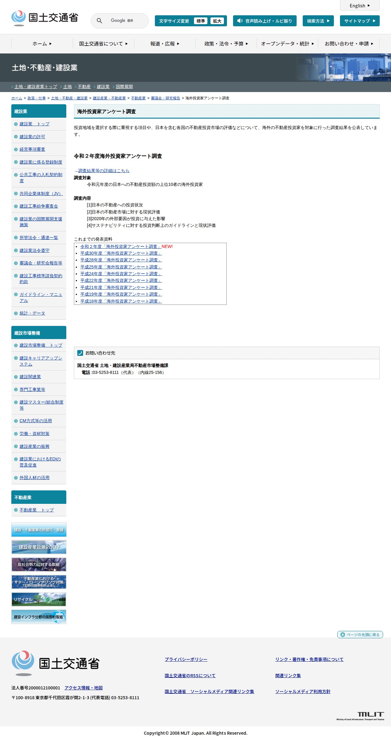 建設産業・不動産業:海外投資家アンケート調査 - 国土交通省 - 保存されたスクリーンショット