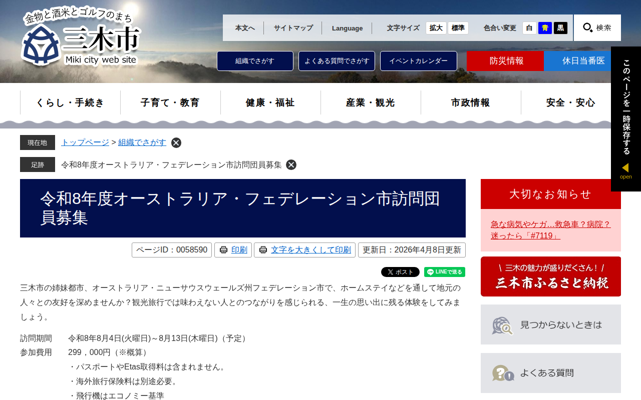 令和8年度オーストラリア・フェデレーション市訪問団員募集 - 三木市ホームページ