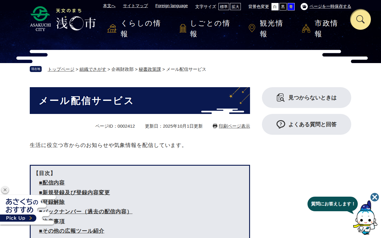 メール配信サービス - 浅口市公式ホームページ(秘書政策課) - 保存されたスクリーンショット
