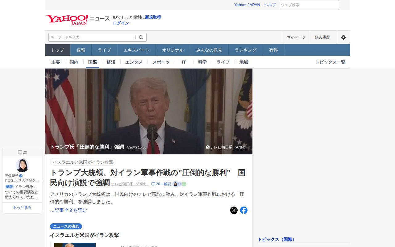 このページは、アメリカのトランプ大統領がイランに対する軍事作戦について国民向けテレビ演説で「圧倒的な勝利」を強調したことを報じています。演説では核心的な目標がほぼ完遂されたと述べられ、今後2~3週間で作戦が完了するとされました。しかしコメント欄では、目新しい内容がなく停戦から遠い内容だとの批判や、トランプの自慢話に落胆したとの意見が寄せられています。