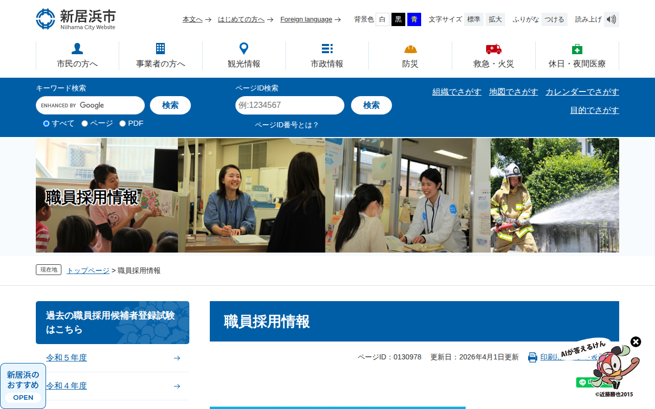 職員採用情報 - 愛媛県新居浜市ホームページ|四国屈指の臨海工業都市 - 保存されたスクリーンショット