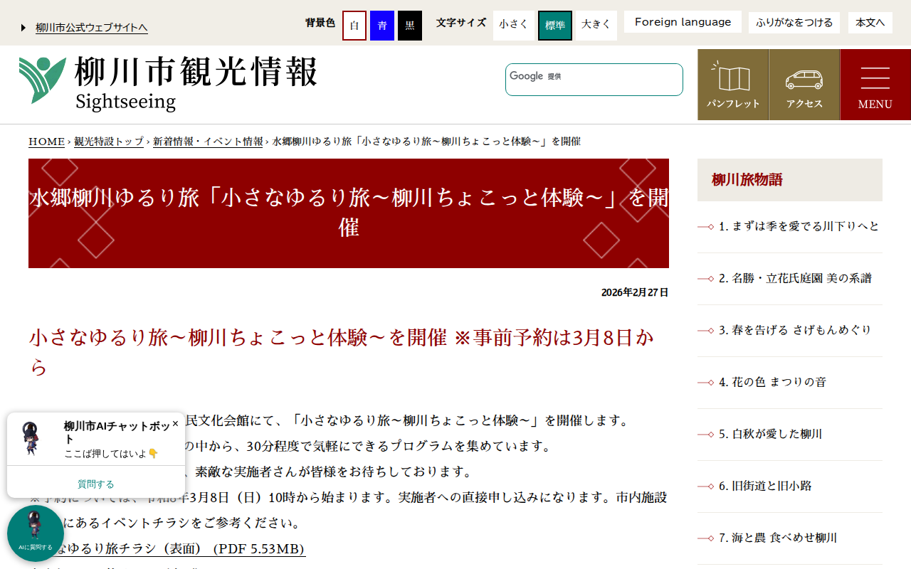 水郷柳川ゆるり旅「小さなゆるり旅~柳川ちょこっと体験~」を開催 - 柳川市 - 保存されたスクリーンショット