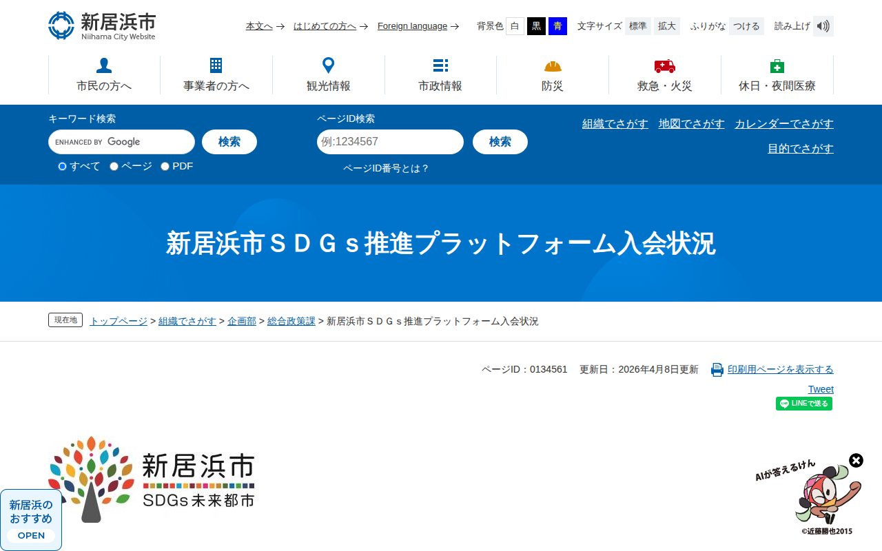 新居浜市SDGs推進プラットフォーム入会状況 - 愛媛県新居浜市ホームページ|四国屈指の臨海工業都市