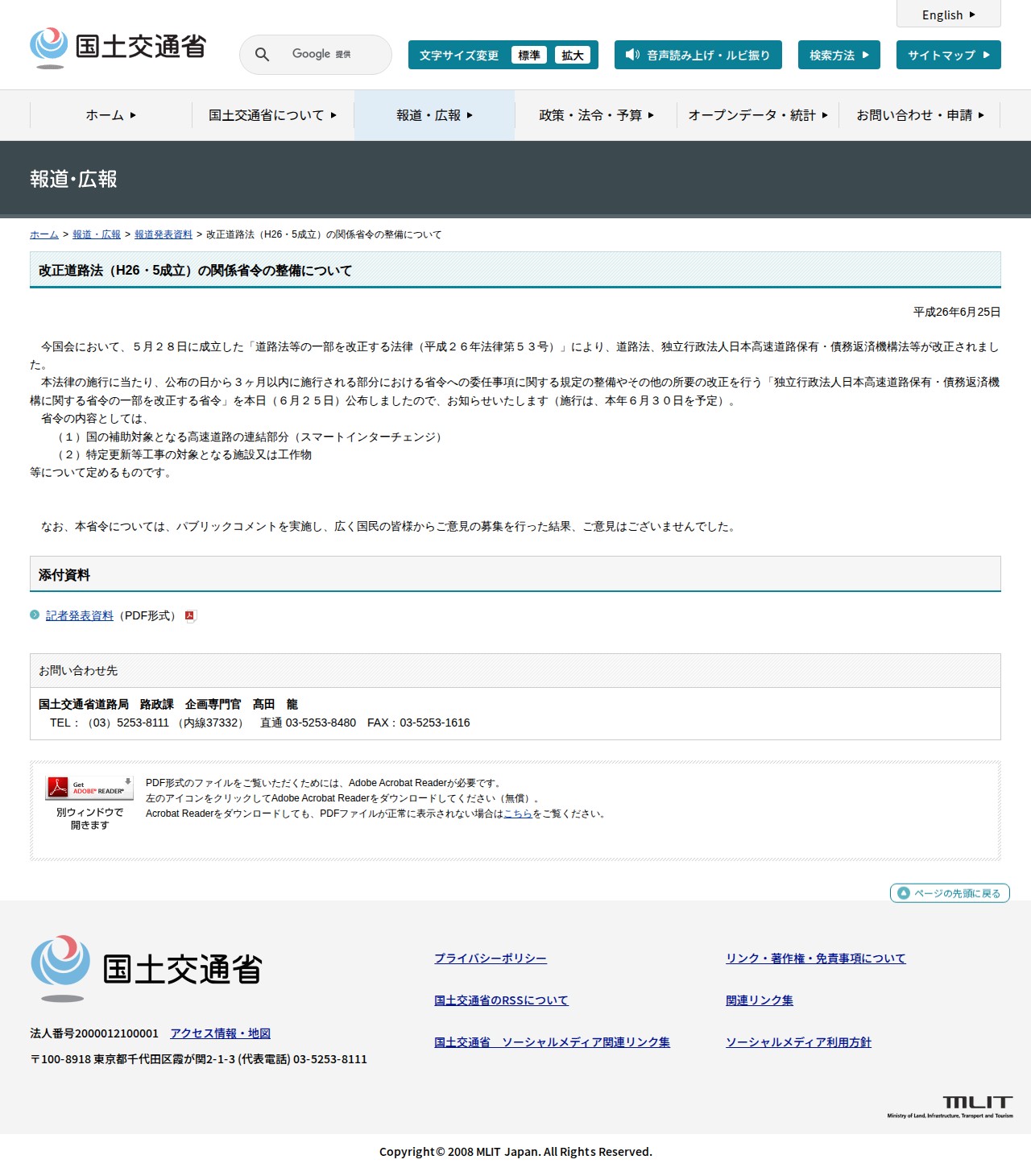 報道発表資料:改正道路法(H26・5成立)の関係省令の整備について - 国土交通省 - 保存されたスクリーンショット
