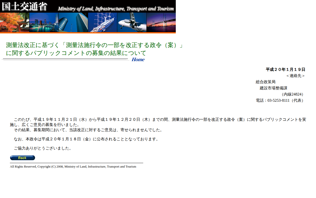 測量法改正に基づく「測量法施行令の一部を改正する政令(案)」に関するパブリックコメントの募集の結果について