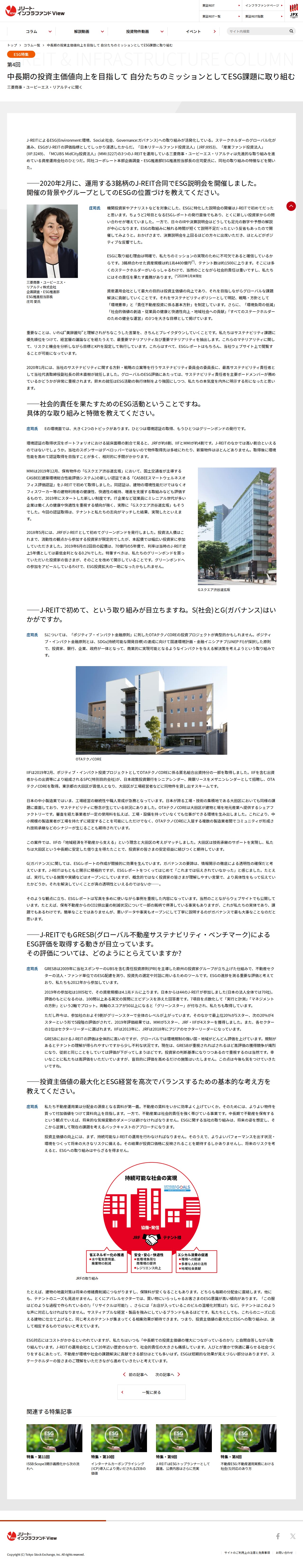 中長期の投資主価値向上を目指して 自分たちのミッションとしてESG課題に取り組む | Jリート・インフラファンドview 東京証券取引所