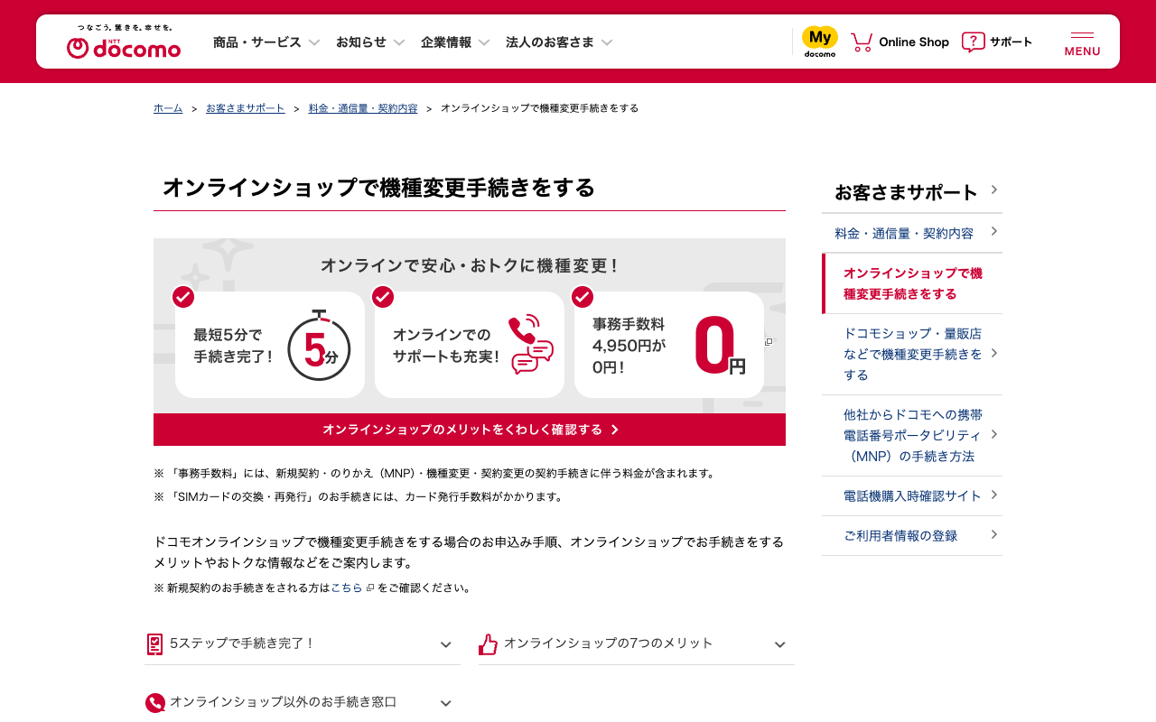 オンラインショップで機種変更手続きをする | お客さまサポート | NTTドコモ