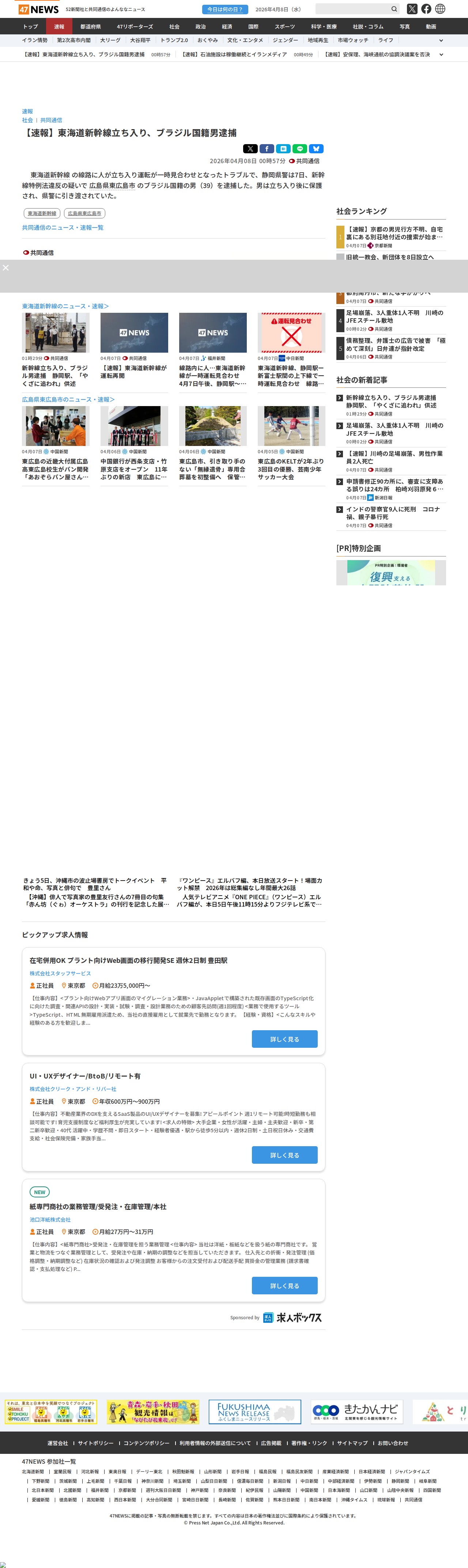 【速報】東海道新幹線立ち入り、ブラジル国籍男逮捕|47NEWS(よんななニュース) - 保存されたスクリーンショット
