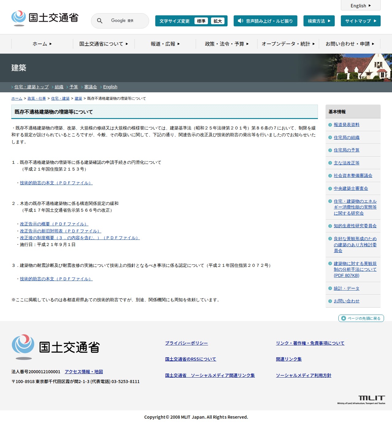 建築:既存不適格建築物の増築等について - 国土交通省 - 保存されたスクリーンショット