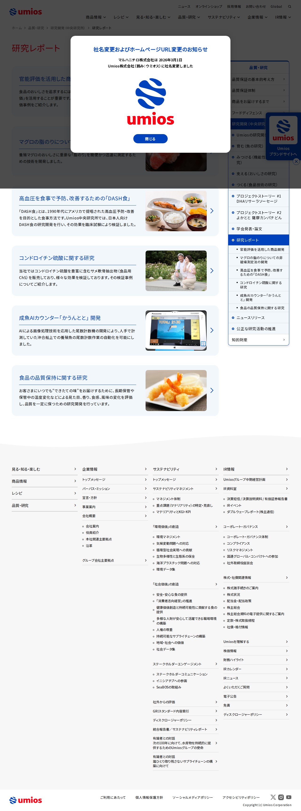 研究レポート | 研究開発(中央研究所) | 品質・研究 | Umios - 保存されたスクリーンショット