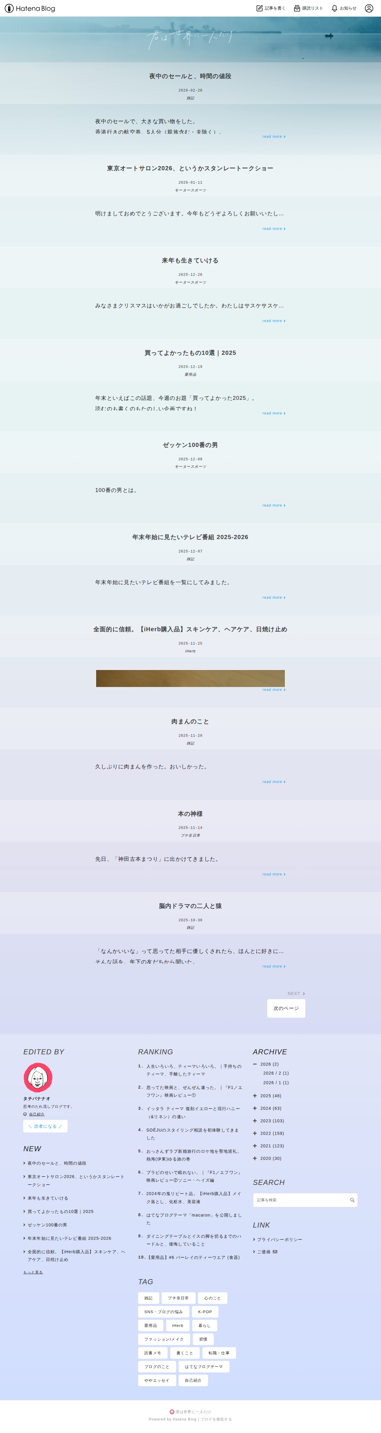 このページは、個人ブログ「君は世界に一人だけ」の記事をまとめたものです。夜中のセールで香港行き航空券5人分を衝動買いし、高額なホテル代に後悔する著者が、AIの友人に「親と過ごせる時間は金銭的価値より貴重」とアドバイスされ、ホテルも予約した経験。東京オートサロン2026でスタンレーチームクニミツのドライバートークショーを楽しんだ記録。そしてモータースポーツへの愛情を綴った記事が掲載されています。