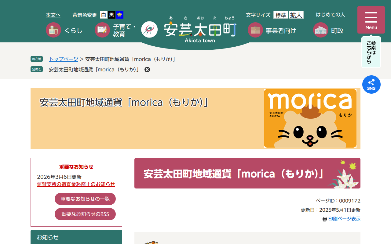 安芸太田町地域通貨「morica(もりか)」 - 安芸太田町公式サイト