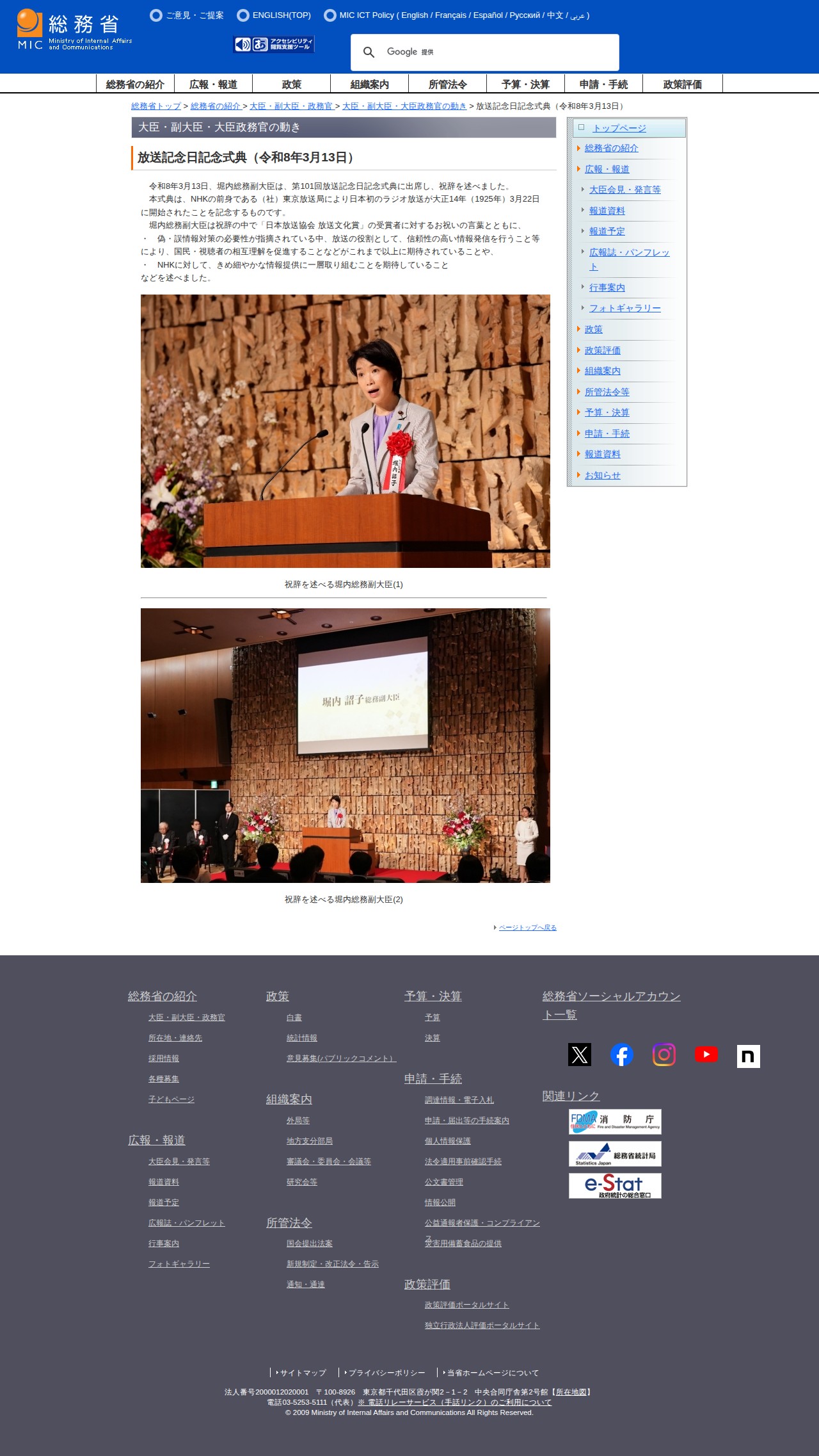 総務省|放送記念日記念式典(令和8年3月13日)