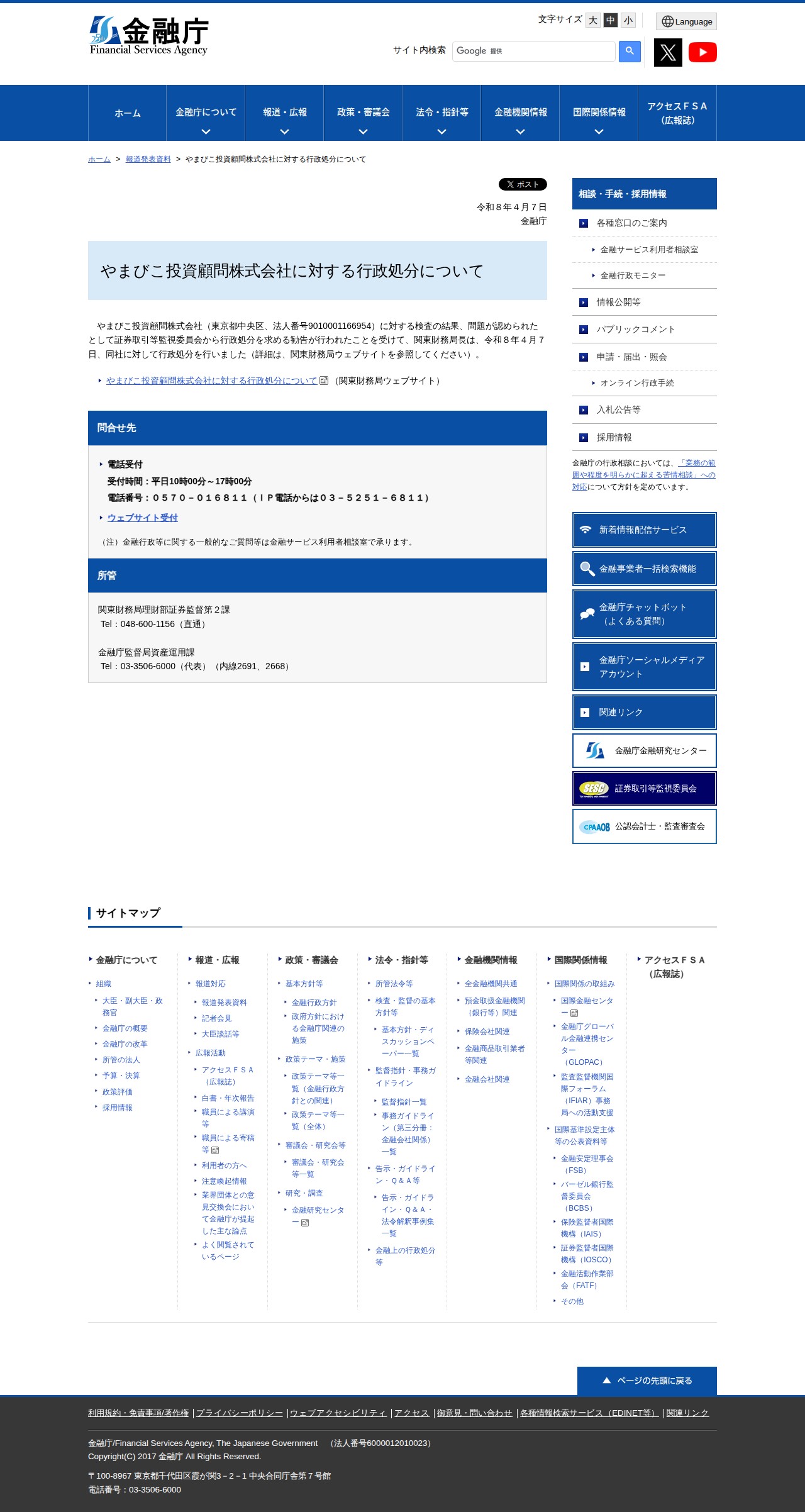 やまびこ投資顧問株式会社に対する行政処分について:金融庁