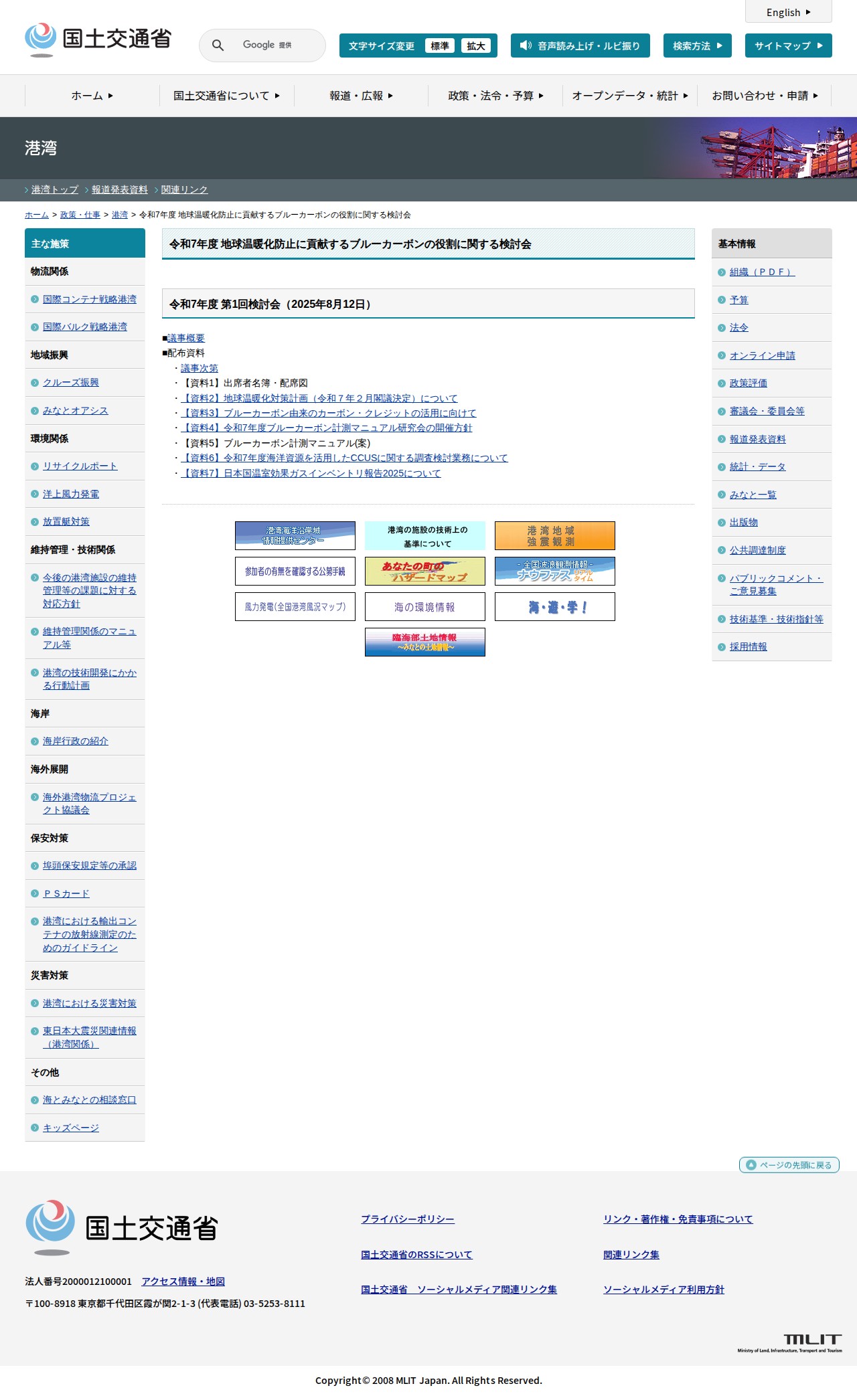 港湾:令和7年度 地球温暖化防止に貢献するブルーカーボンの役割に関する検討会 - 国土交通省