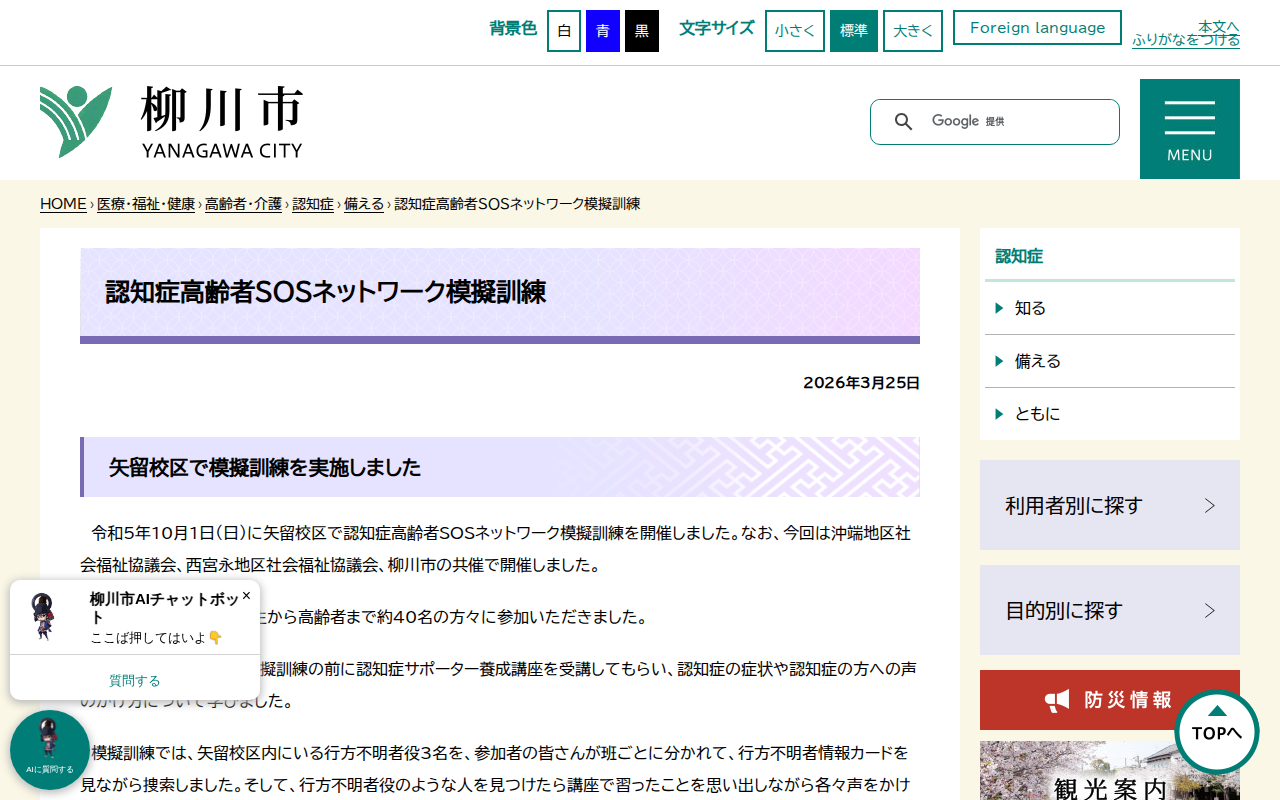 認知症高齢者SOSネットワーク模擬訓練 - 柳川市