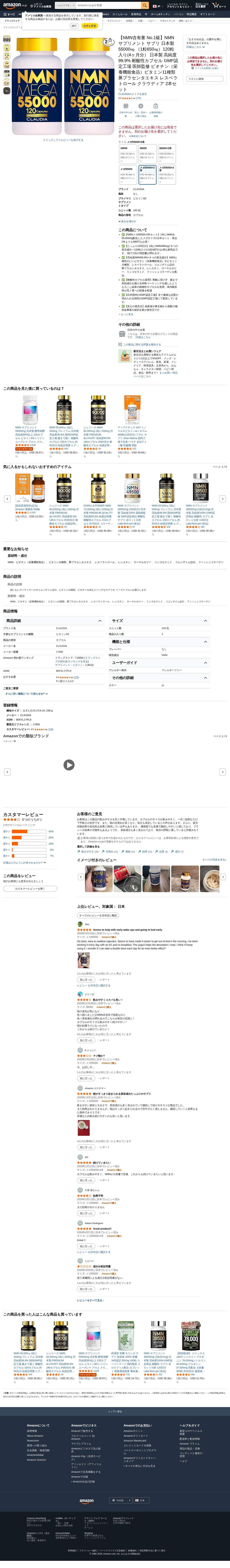 Amazon | 【NMN含有量 No.1級】NMNサプリメント サプリ 日本製 55000㎎ (1粒650㎎)120粒入り(4ヶ月分) 日本製 高純度99.9% 耐酸性カプセル GMP認定工場 医師監修 ビオチン(栄養機能食品)ビタミン11種類 豚プラセンタエキス レスベラトロール クラウディア 2本セット | CLAUDIA | サプリメント・ビタミン - 保存されたスクリーンショット