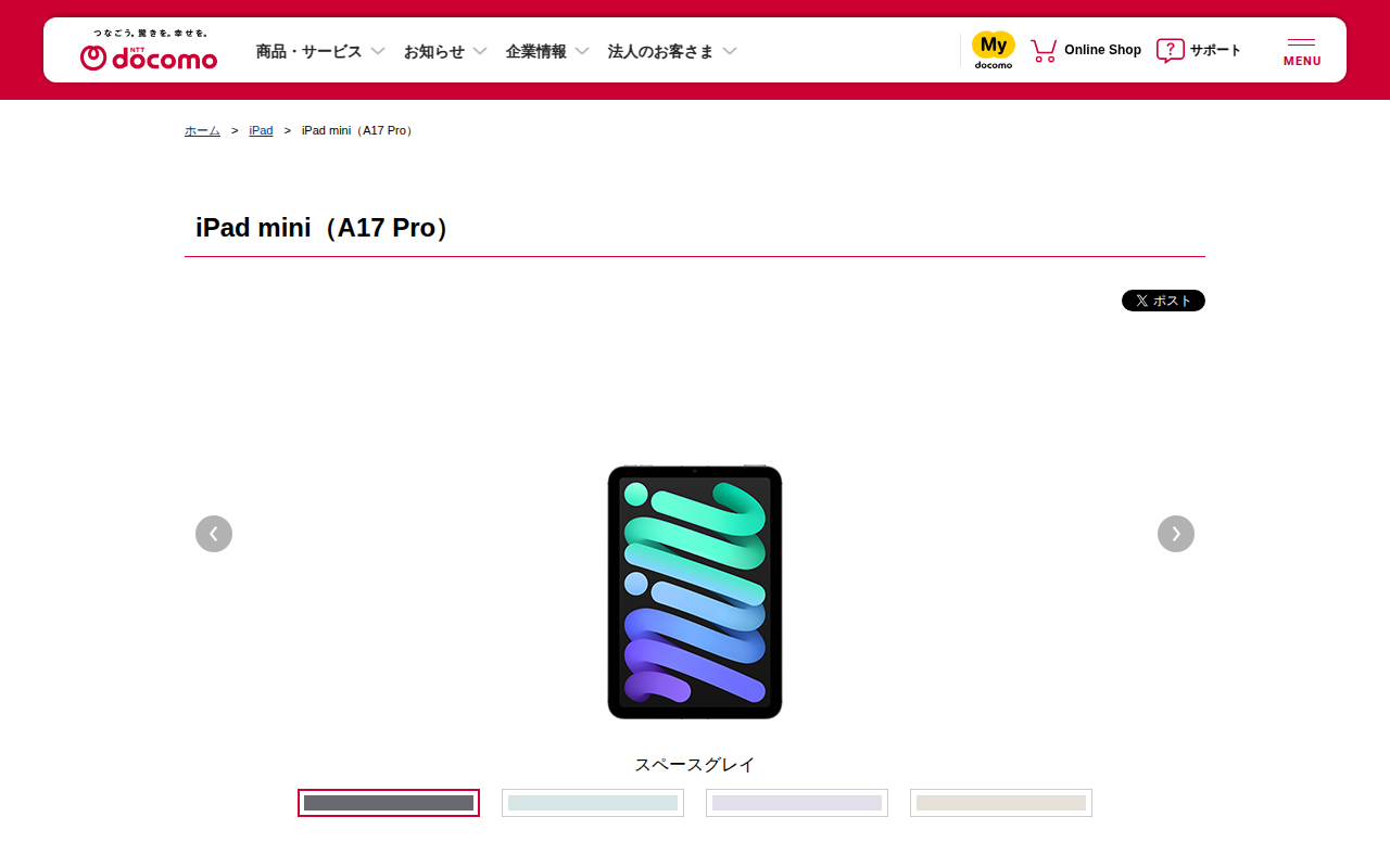 iPad mini(A17 Pro) | iPad | NTTドコモ - 保存されたスクリーンショット