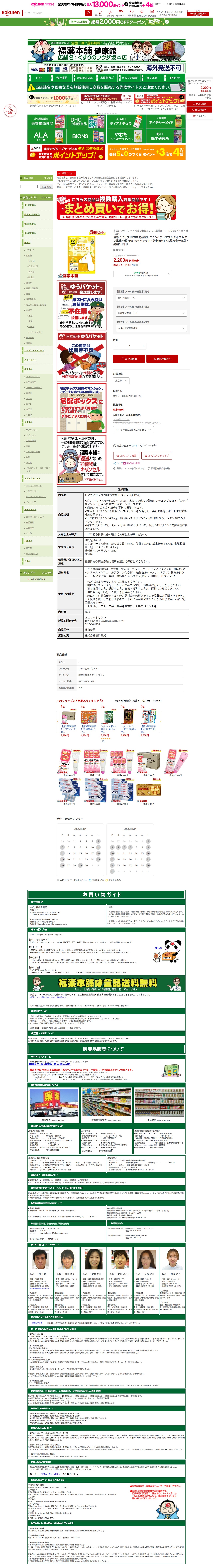 【楽天市場】おやつにサプリZOO 持続型ビタミンC チュアブルタイプ レモン風味 40粒×5個 [ゆうパケット・送料無料]〈お取り寄せ商品・納期5~10日〉:福薬本舗 健康館 - 保存されたスクリーンショット