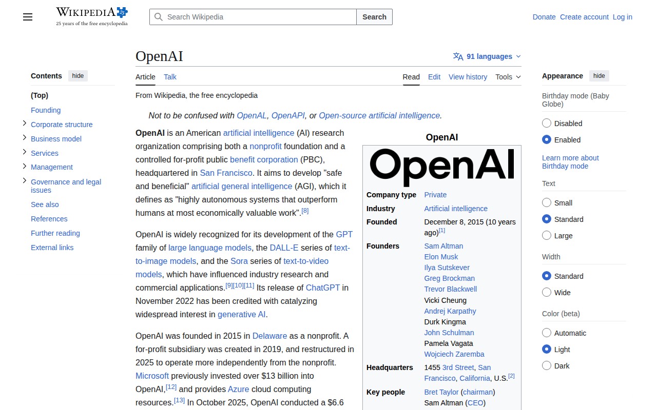 https://en.wikipedia.org/wiki/OpenAI2026年4月6日 13:58 JST•アーカイブページ・viewer・ダウンロードは、この保存版を基準に表示されます。