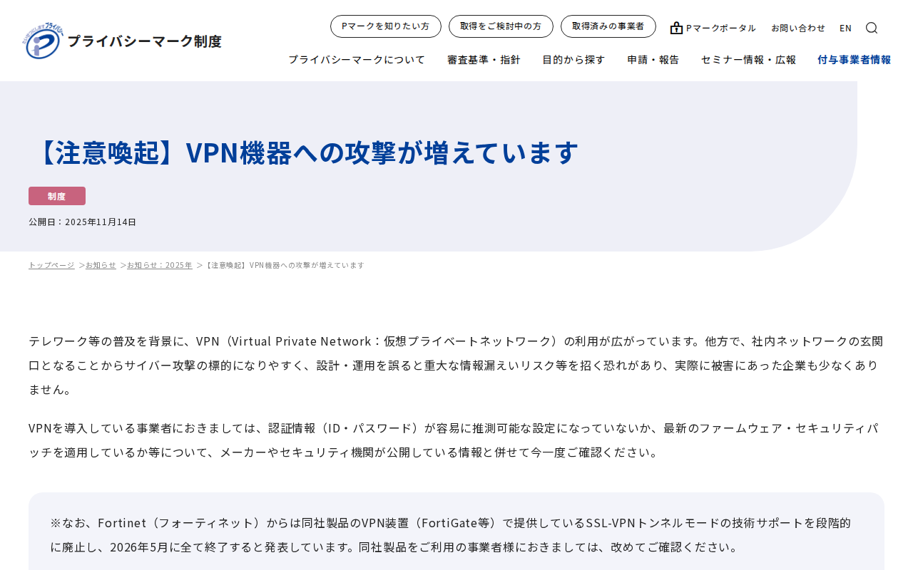【注意喚起】VPN機器への攻撃が増えています|一般財団法人日本情報経済社会推進協会(JIPDEC)