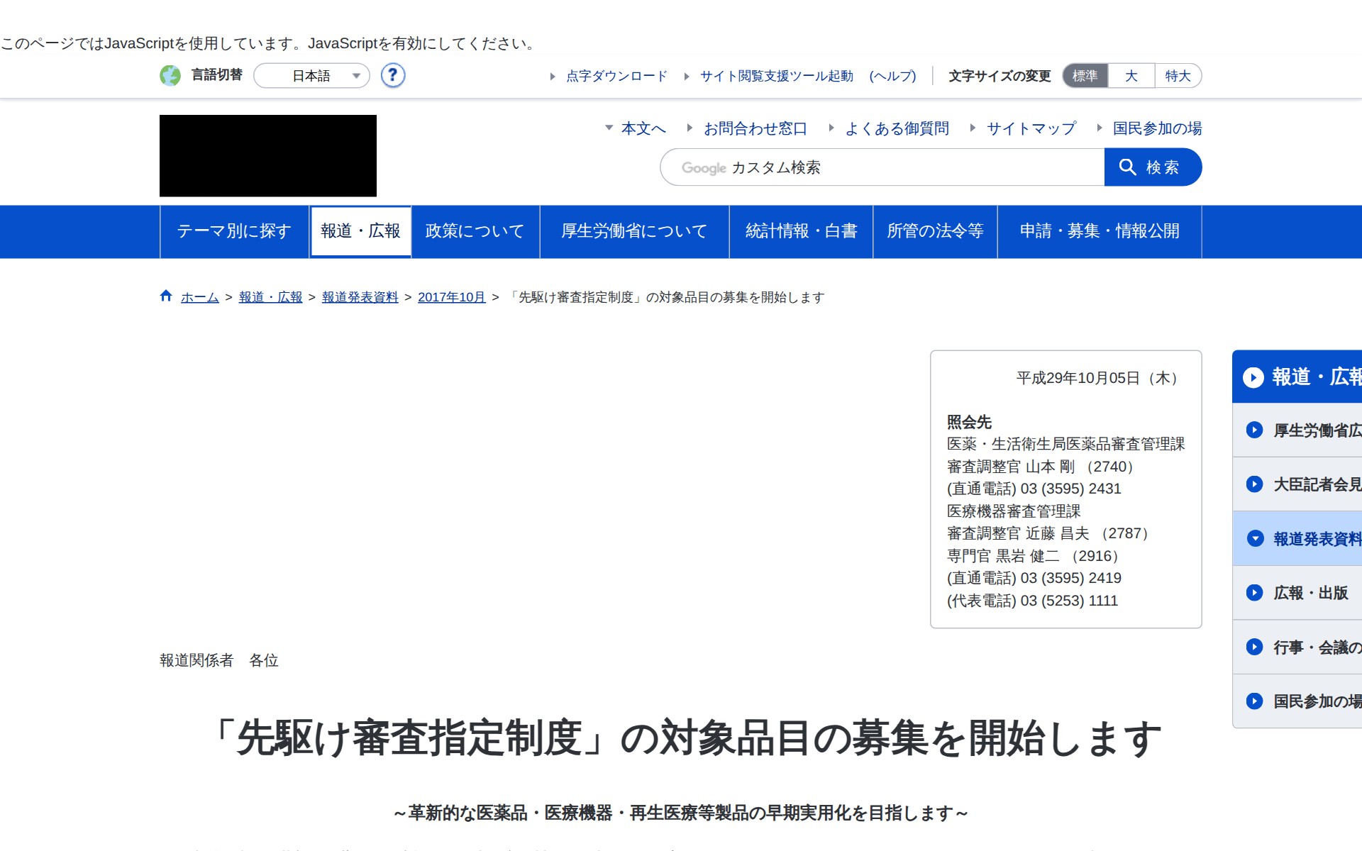 「先駆け審査指定制度」の対象品目の募集を開始します|厚生労働省