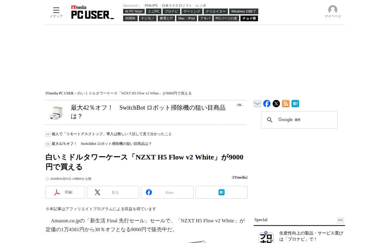 白いミドルタワーケース「NZXT H5 Flow v2 White」が9000円で買える - ITmedia PC USER - 保存されたスクリーンショット