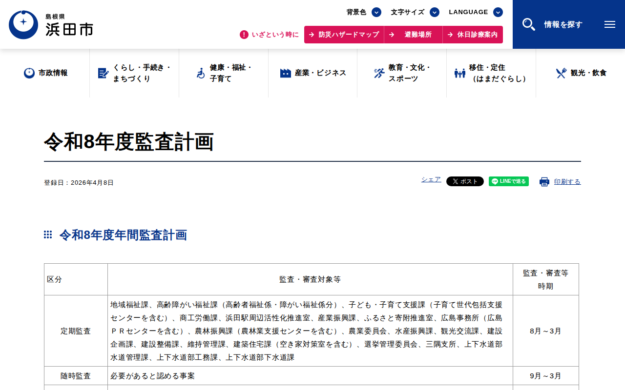 令和8年度監査計画|浜田市