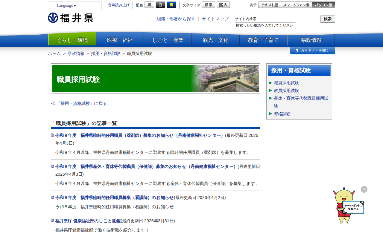 職員採用試験 | 福井県ホームページ