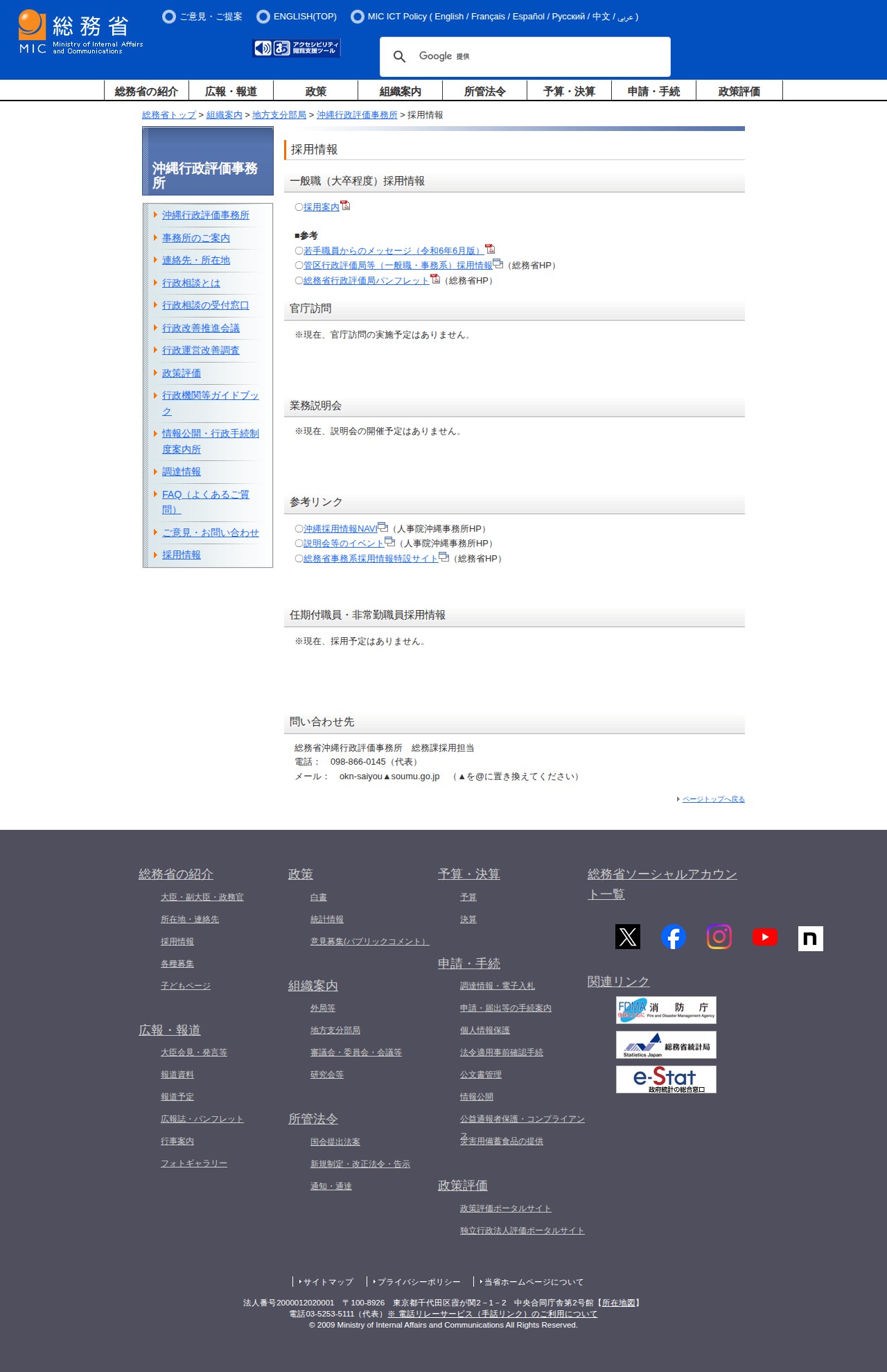 総務省|沖縄行政評価事務所|採用情報
