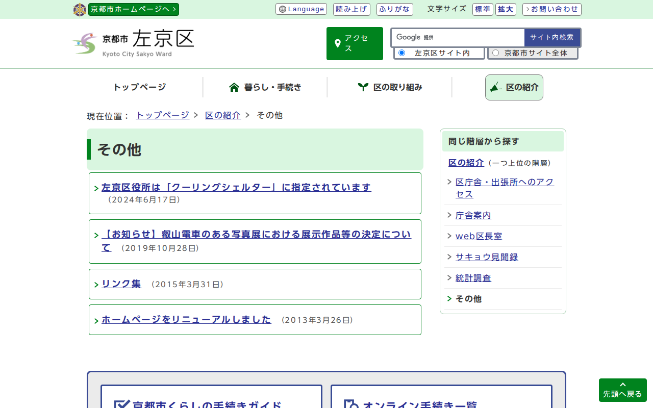 https://www.city.kyoto.lg.jp/sakyo/category/101-7-0-0-0-0-0-0-0-0.html2026年4月8日 19:00 JST•アーカイブページ・viewer・ダウンロードは、この保存版を基準に表示されます。