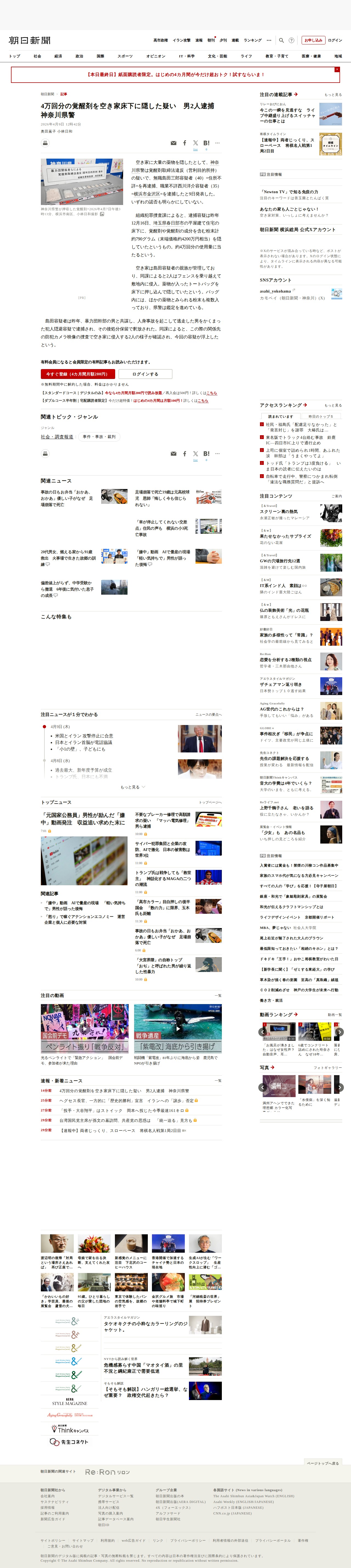 ![4万回分の覚醒剤を空き家床下に隠した疑い 男2人逮捕 神奈川県警 [神奈川県]:朝日新聞 - 保存されたスクリーンショット](https://pub-f6fa8ca7bebe4069bff3224f9a8f5334.r2.dev