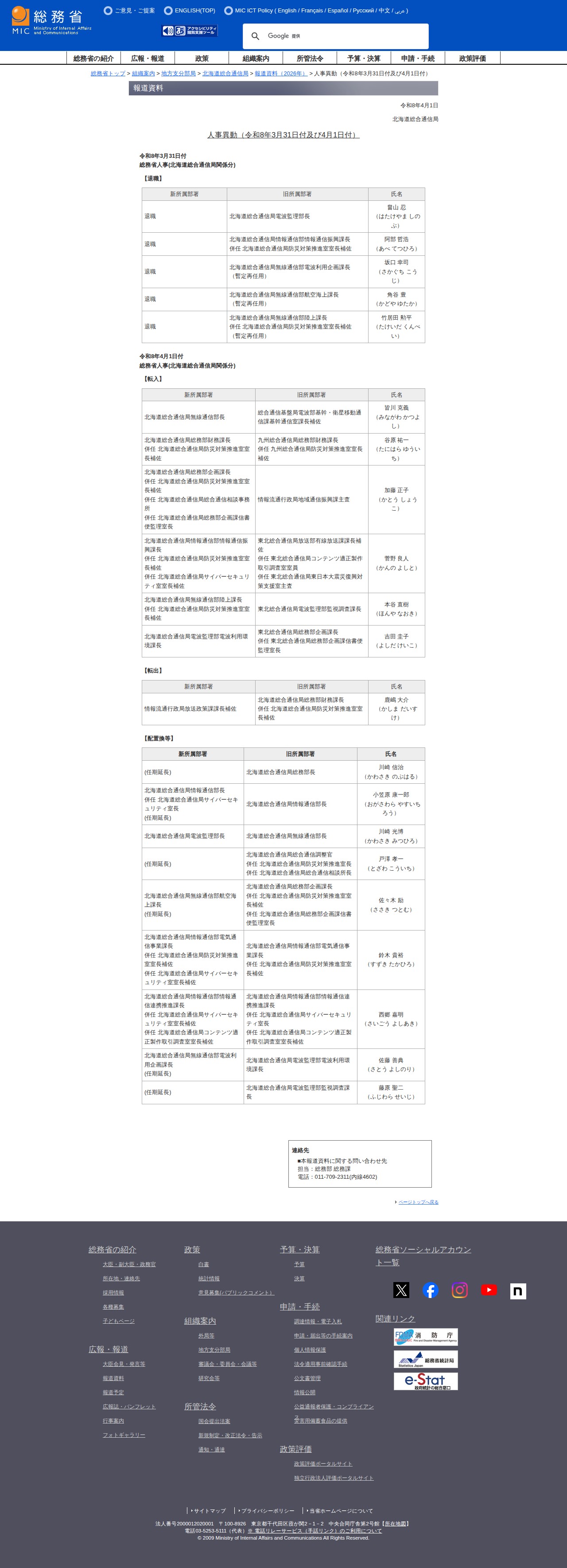 総務省|北海道総合通信局|人事異動(令和8年3月31日付及び4月1日付) - 保存されたスクリーンショット