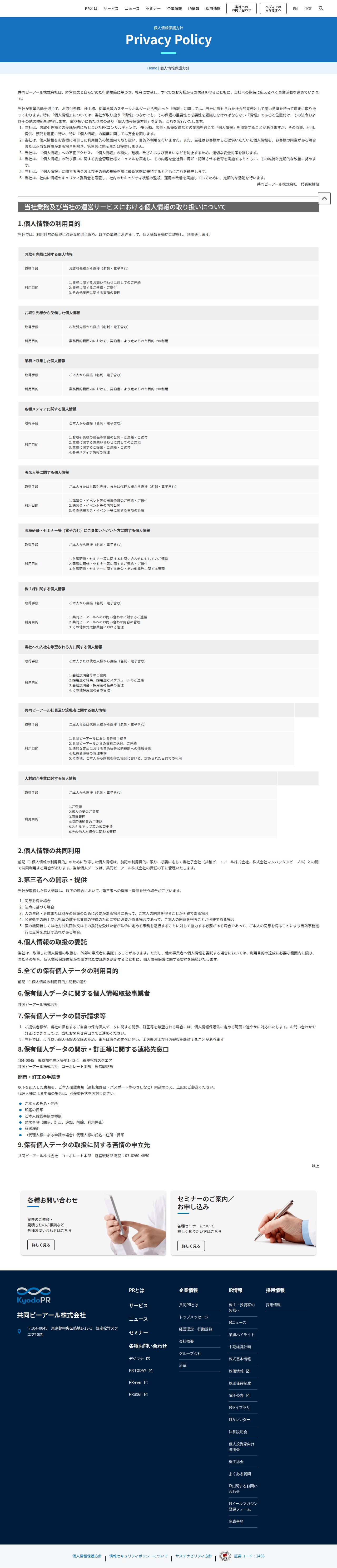 個人情報保護方針 | PR会社 | 共同ピーアール株式会社