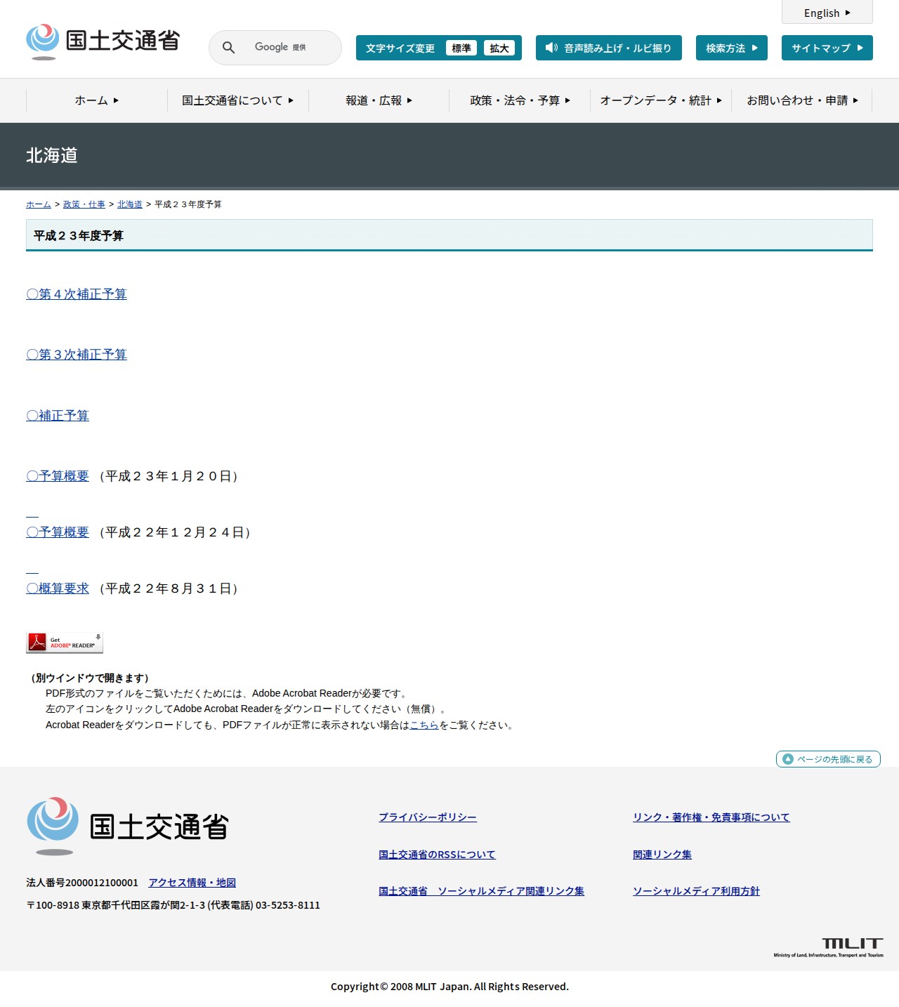 北海道:平成23年度予算 - 国土交通省
