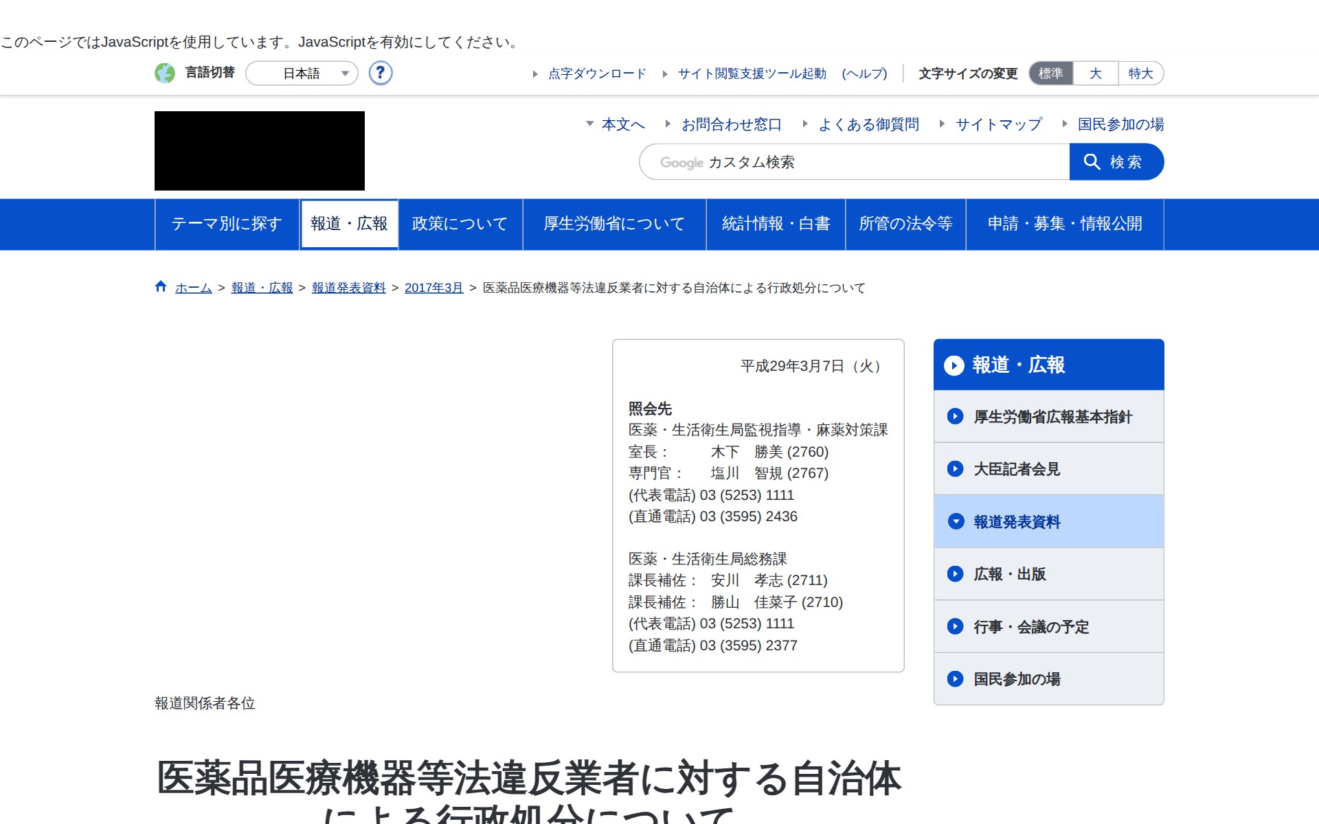 医薬品医療機器等法違反業者に対する自治体による行政処分について(第1報)|厚生労働省