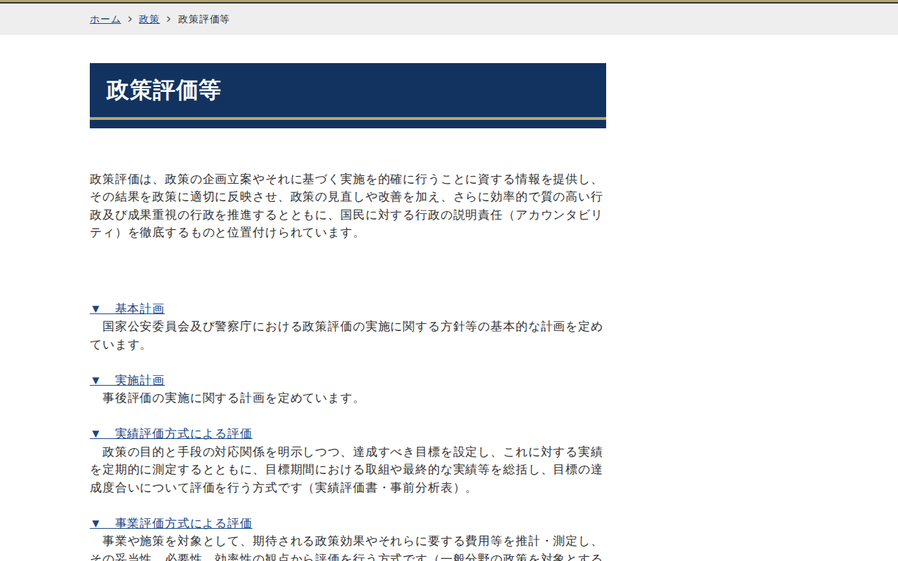 https://www.npa.go.jp/policies/evaluation/index.html2026年4月9日 09:04 JST•アーカイブページ・viewer・ダウンロードは、この保存版を基準に表示されます。