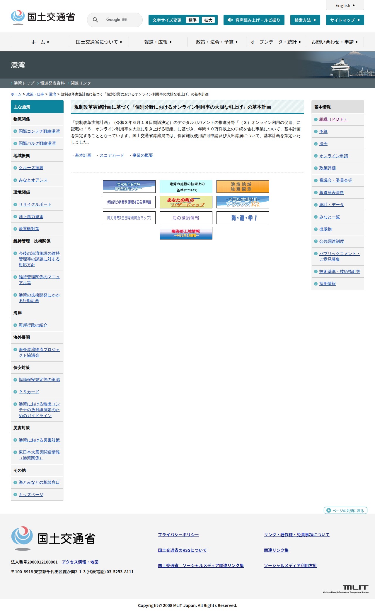 港湾:規制改革実施計画に基づく「個別分野におけるオンライン利用率の大胆な引上げ」の基本計画 - 国土交通省