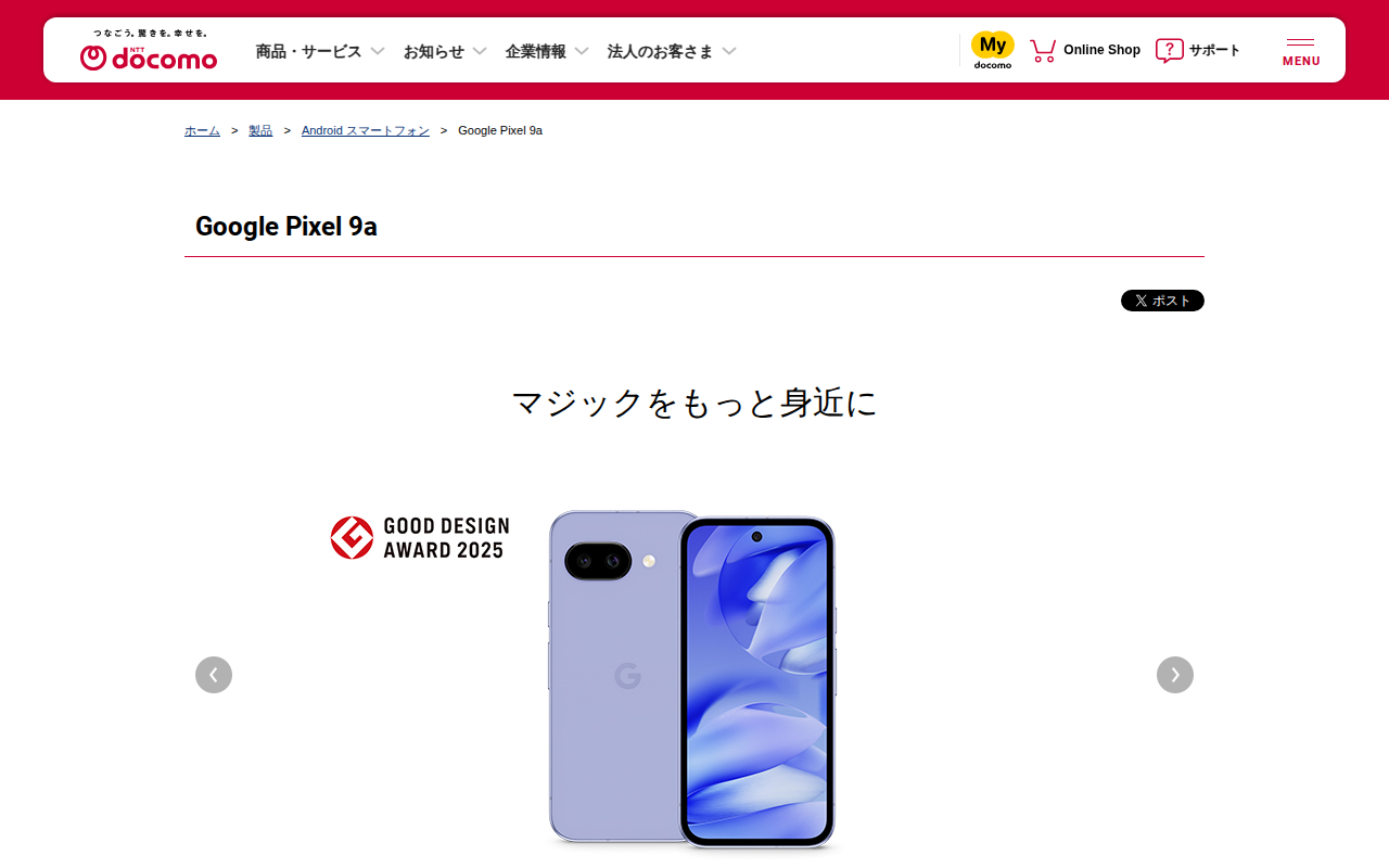 Google Pixel 9a | Android スマートフォン | 製品 | NTTドコモ