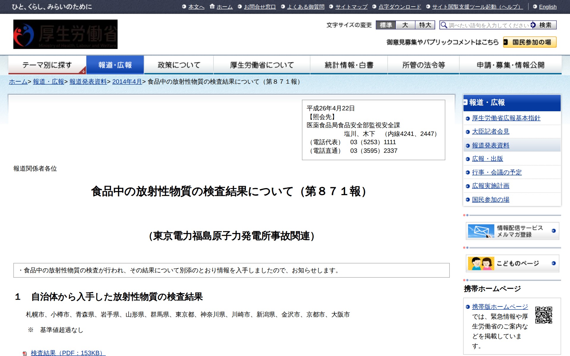 食品中の放射性物質の検査結果について(第871報) |報道発表資料|厚生労働省