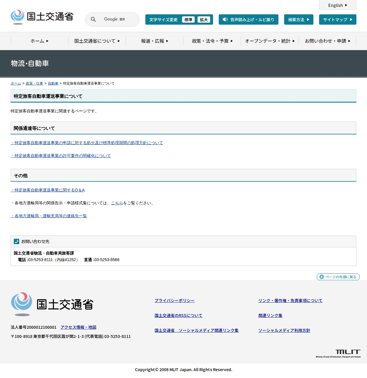 自動車:特定旅客自動車運送事業について - 国土交通省 - 保存されたスクリーンショット