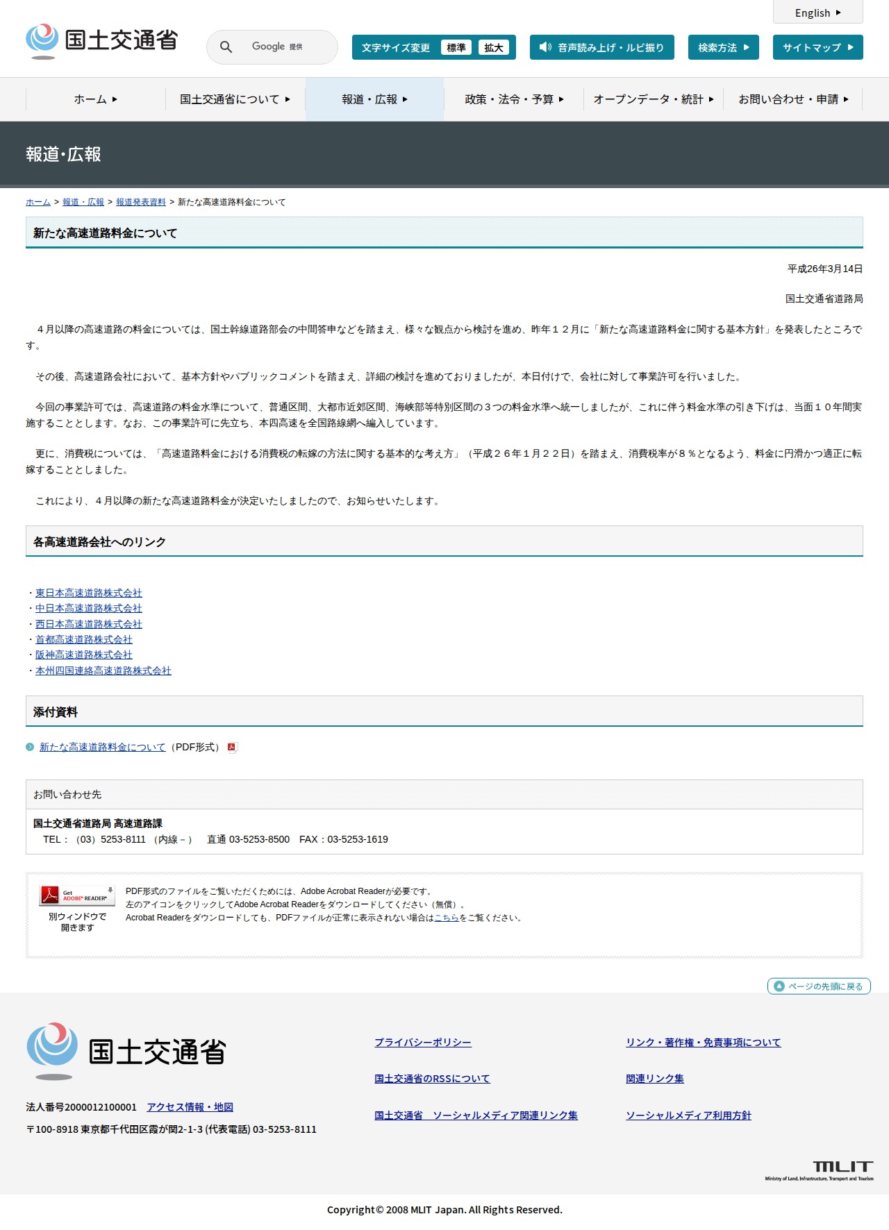 報道発表資料:新たな高速道路料金について - 国土交通省 - 保存されたスクリーンショット