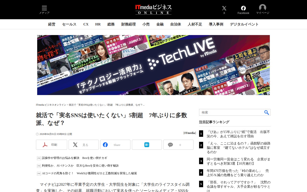 就活で「実名SNSは使いたくない」5割超 7年ぶりに多数派、なぜ?(1/2 ページ) - ITmedia ビジネスオンライン