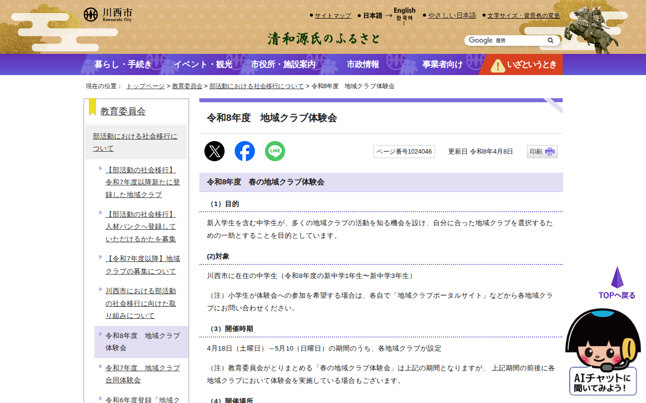 https://www.city.kawanishi.hyogo.jp/kyoiku/1019540/1024046.html2026年4月9日 07:09 JST•アーカイブページ・viewer・ダウンロードは、この保存版を基準に表示されます。