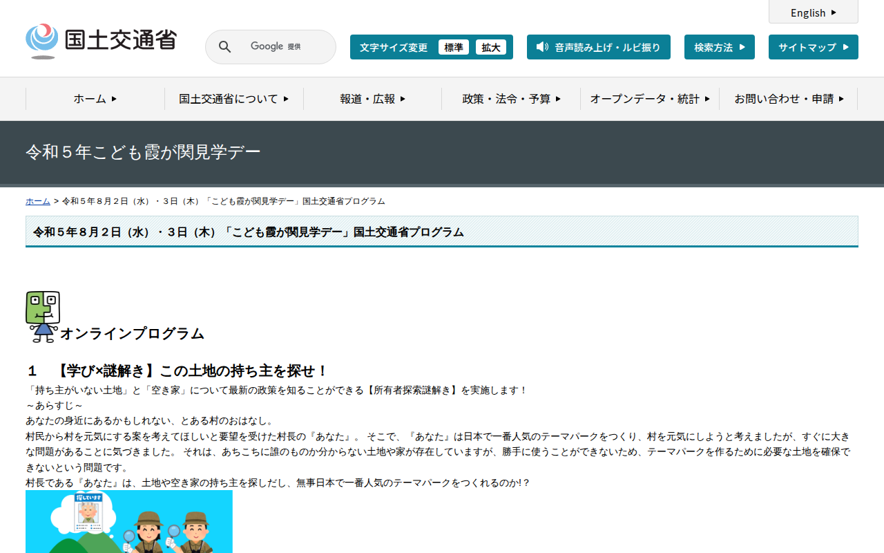 令和5年8月2日(水)・3日(木)「こども霞が関見学デー」国土交通省プログラム - 国土交通省