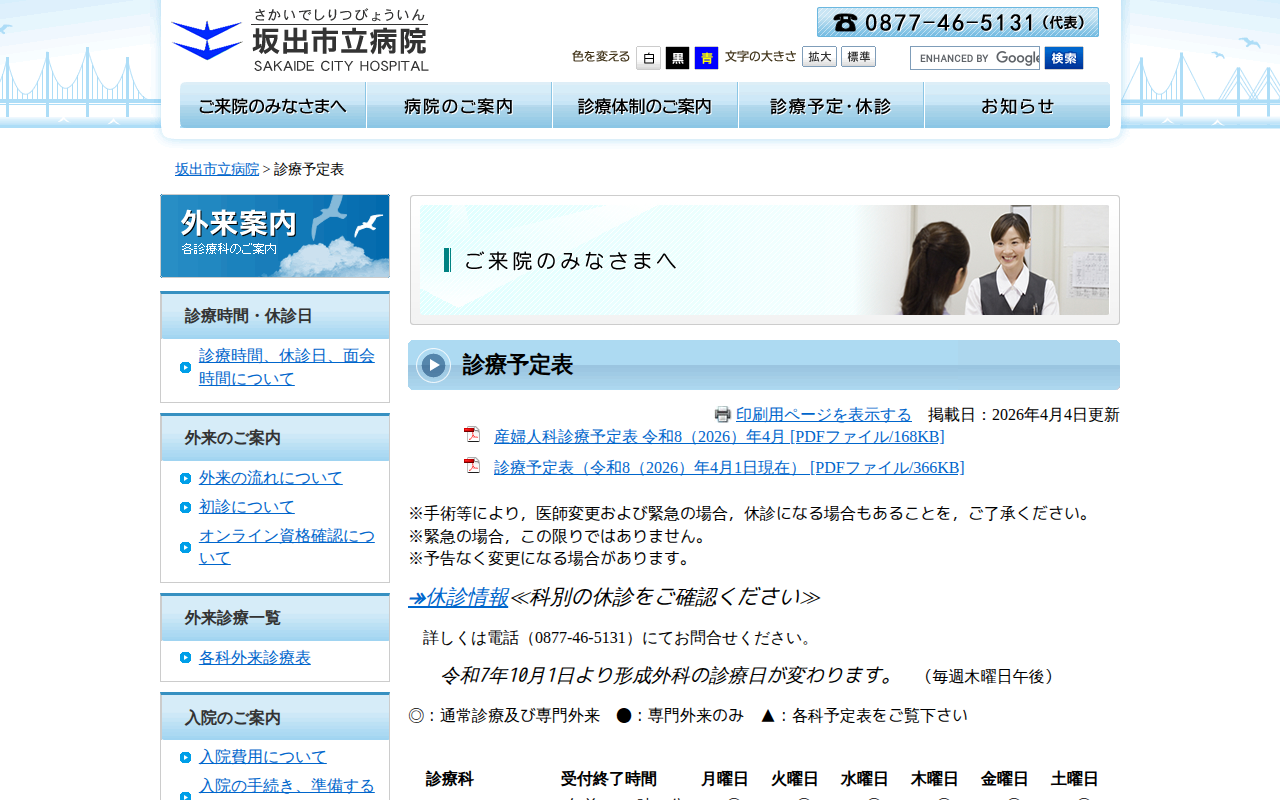 診療予定表 - 坂出市立病院