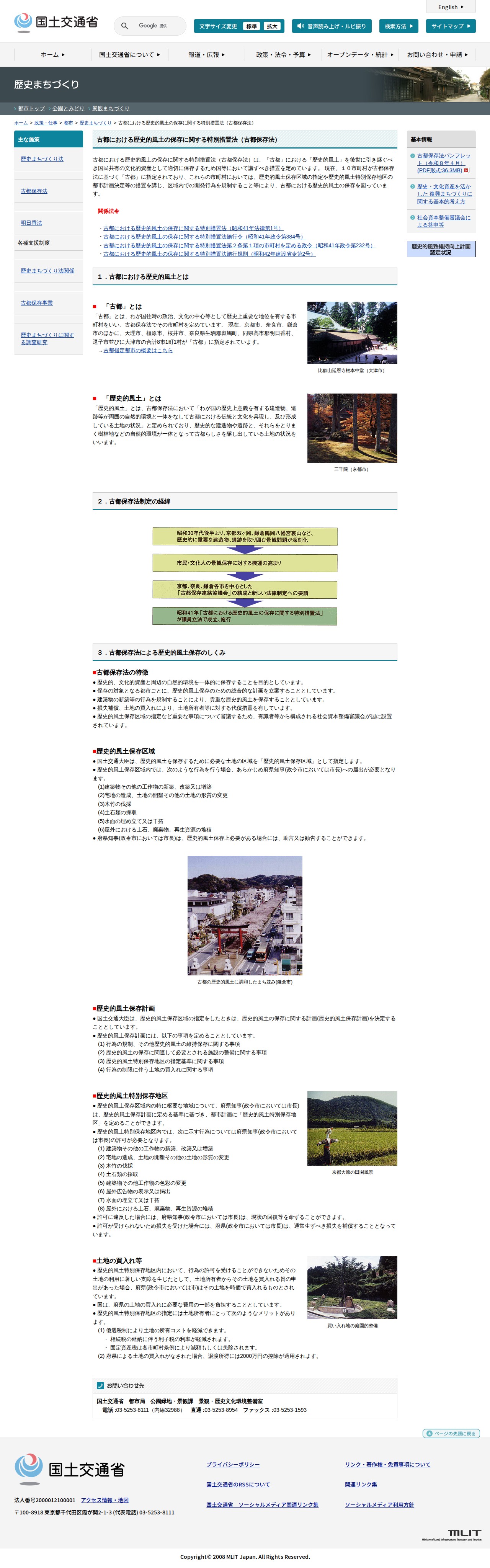 歴史まちづくり:古都における歴史的風土の保存に関する特別措置法(古都保存法) - 国土交通省 - 保存されたスクリーンショット