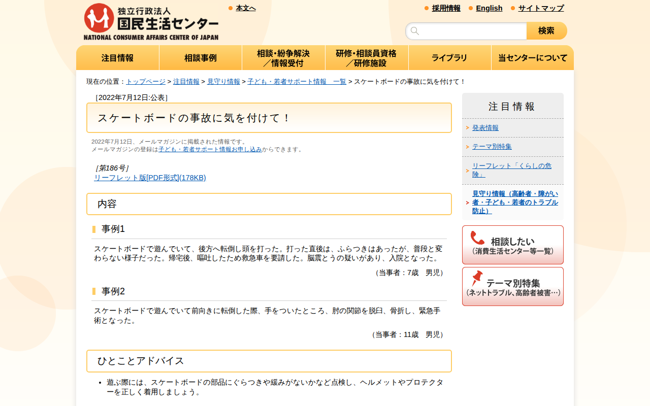 スケートボードの事故に気を付けて!(見守り情報)_国民生活センター - 保存されたスクリーンショット