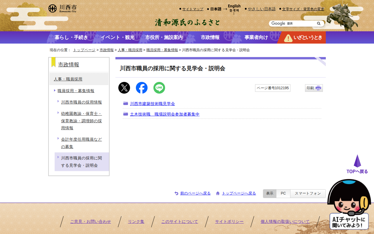 川西市職員の採用に関する見学会・説明会|川西市 - 保存されたスクリーンショット