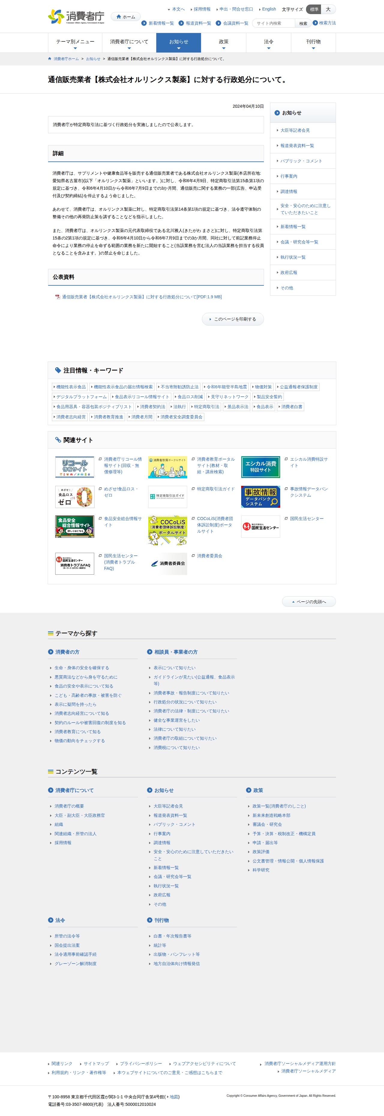 通信販売業者【株式会社オルリンクス製薬】に対する行政処分について。 | 消費者庁 - 保存されたスクリーンショット